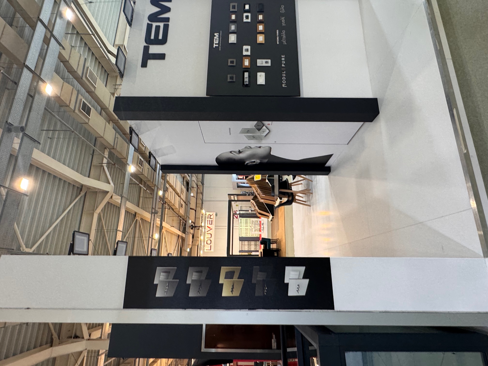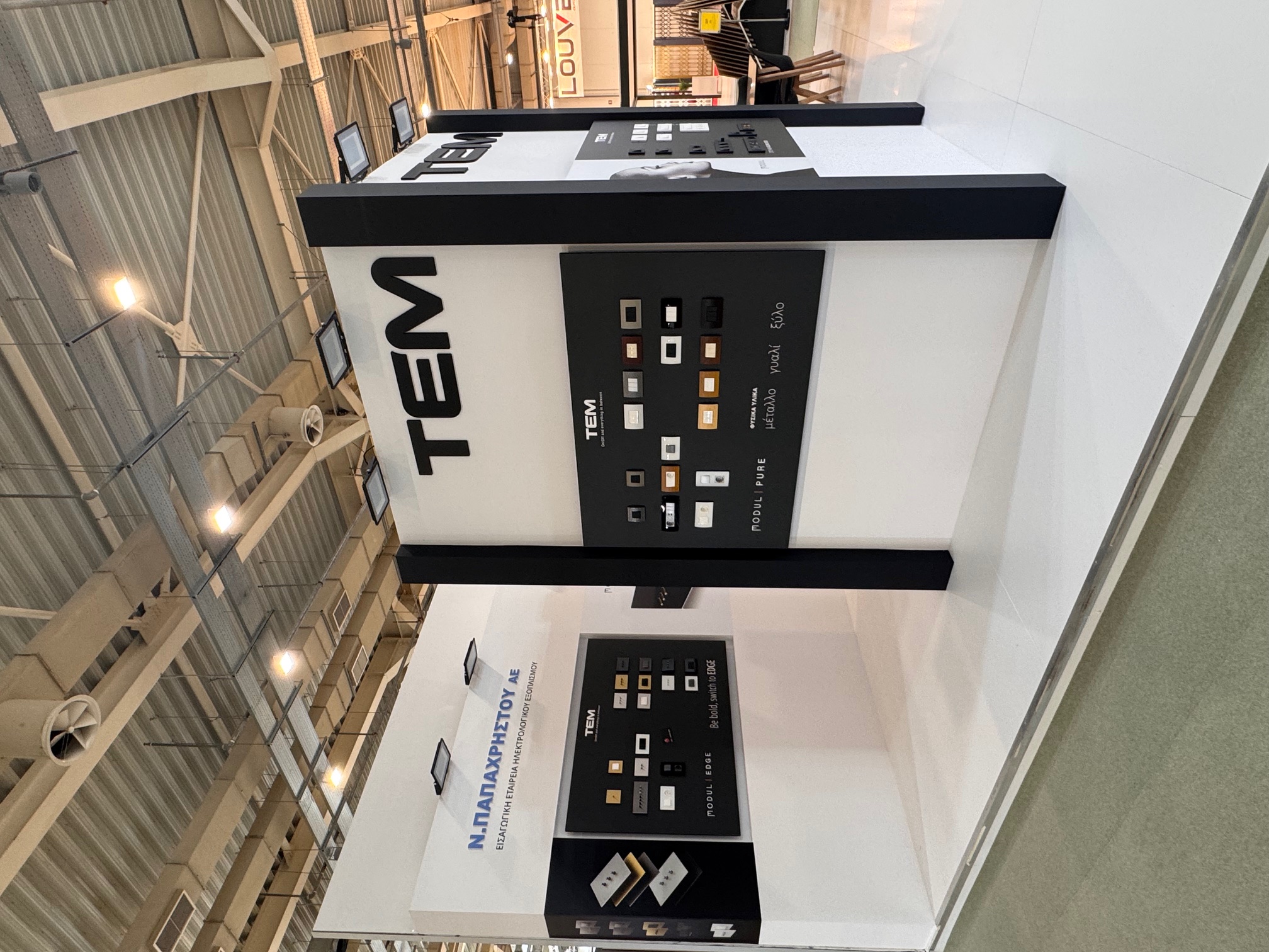 Στο περίπτερό μας παρουσιάσαμε τη γκάμα διακοπτικού υλικού της ΤΕΜ, αποκλειστικά διαθέσιμης στην ελληνική αγορά από την εταιρεία μας — με ξεχωριστό ενδιαφέρον για τις νέες σειρές MODUL EDGE και LOGIQ FLAT και PRIME.