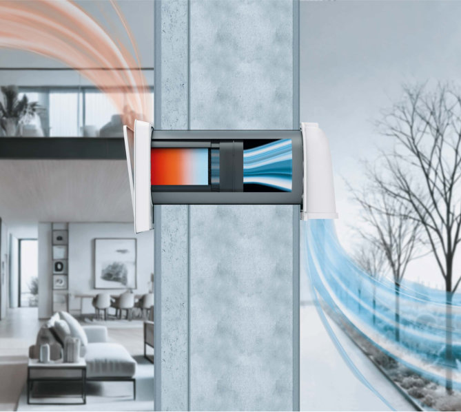 Η αποκεντρωμένη ανάκτηση θερμότητας με μονάδες εναλλασσόμενης ροής προσφέρει μια καινοτόμο λύση για να διασφαλίσει την εναλλαγή αέρα σε εσωτερικούς χώρους, διατηρώντας παράλληλα τη θερμική άνεση. Αυτές οι μονάδες είναι ιδανικές για υπάρχουσες κατοικίες ή για διαμερίσματα που βρίσκονται υπό ανακαίνιση ή για νέα κτίρια όπου δεν παρέχονται κεντρικά συστήματα εξαερισμού. Με απλή εγκατάσταση στον τοίχο, ανανεώνουν αποτελεσματικά τον αέρα σε κάθε δωμάτιο.