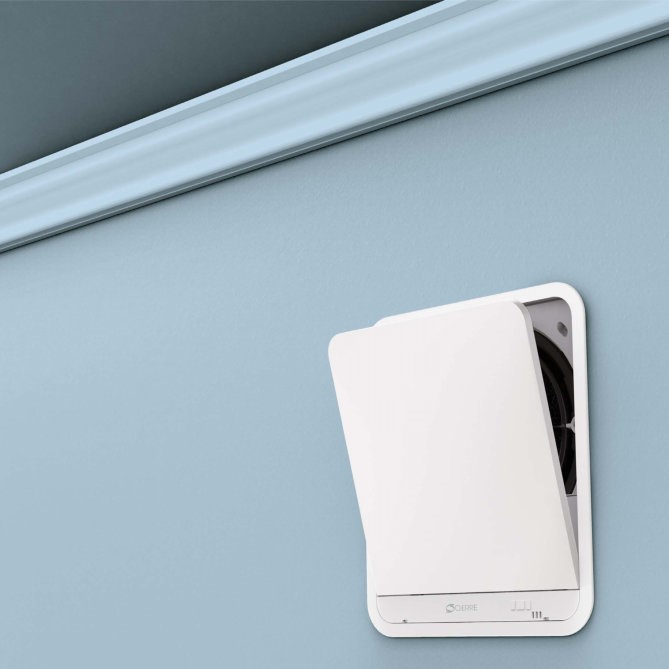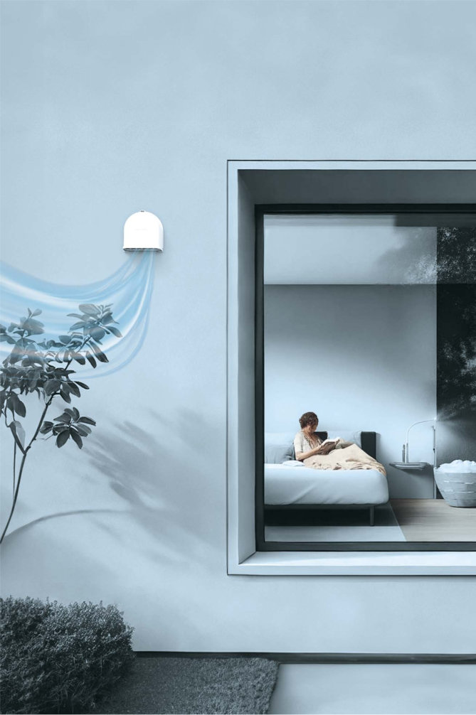 Η ενσωματωμένη τεχνολογία προσαρμόζει την απόδοση του προϊόντος ανάλογα με την ποιότητα του αέρα και το φως του δωματίου. Η τοποθέτηση του κινητήρα μέσα στον τοίχο εγγυάται μέγιστη ησυχία.