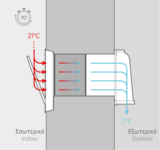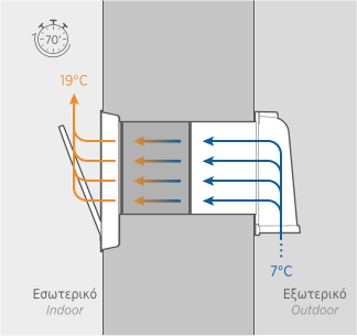 Αυτή η διαδικασία, που επαναλαμβάνεται συνεχώς, εξασφαλίζει καθαρό, υγιεινό αέρα διατηρώντας παράλληλα τη θερμική άνεση χωρίς απώλειες ενέργειας.